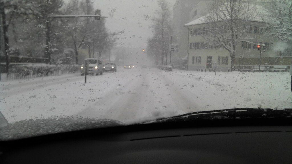 Wintereinbruch in Dornbirn: Große Menge Neuschnee auch auf den Straßen