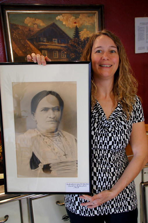 Christine Reiter mit dem Bild von Urgroßmutter Christine Hollenstein