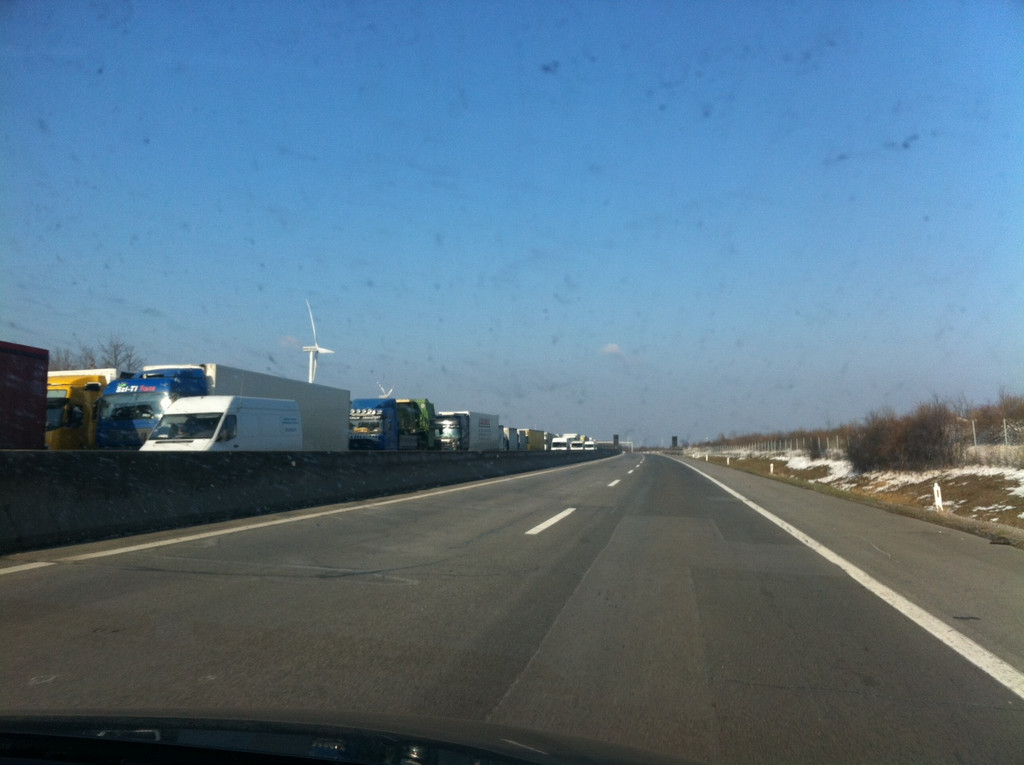 Lkw-Stau und Verkehrsbehinderungen auf der A4, Samstag 16.03.13