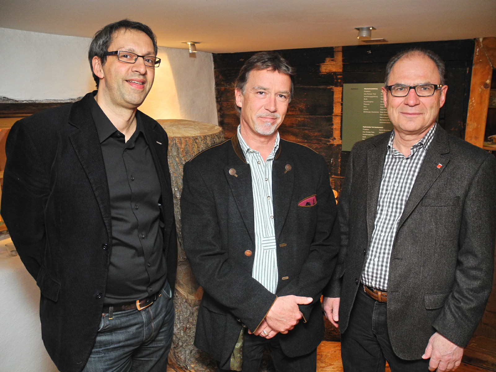 (l.) Der Museumsleiter Johannes Inama, mit dem Biologen Michael Fasel und Gemeindevorsteher Erich Büchel von Ruggell Erich Büchel