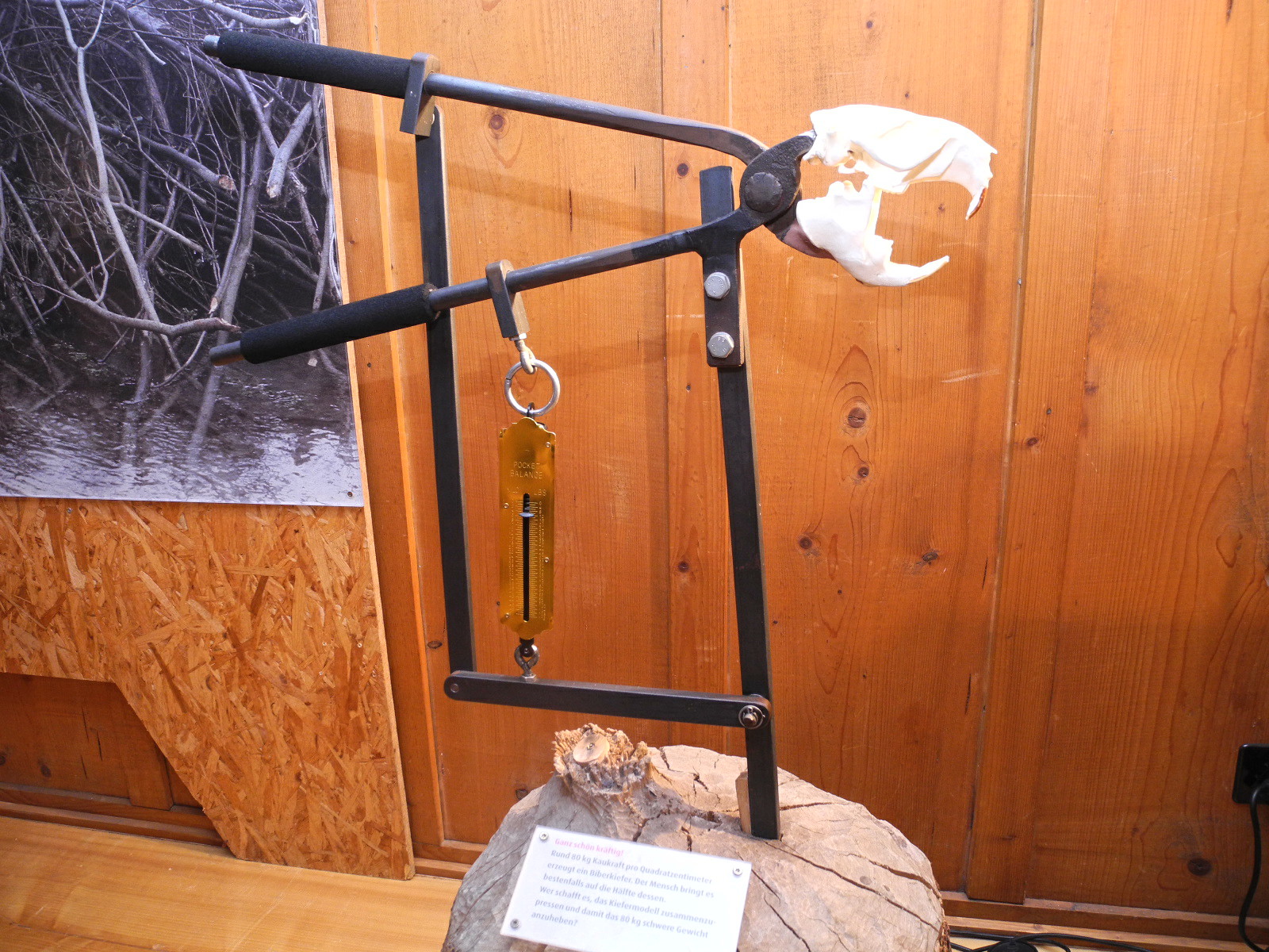 Ein Bibergebiss um die Beisskraft zu demonstrieren