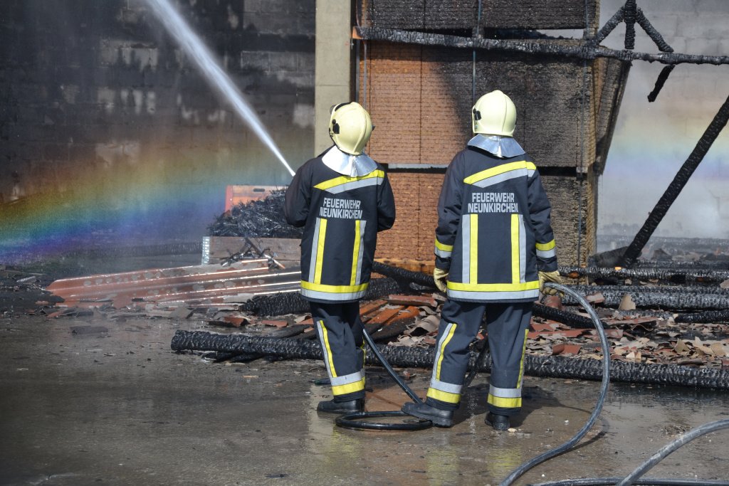 Großbrand von Lagerhalle in Neunkirchen hielt Feuerwehr in Atem