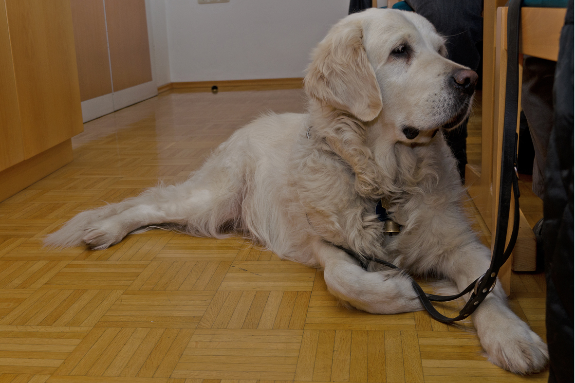 Blindenhund Eddi bewacht das Geschehen.