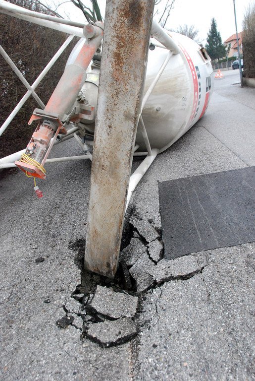 40 Tonnen schweres Baustoff-Silo in Guntramsdorf umgestürzt