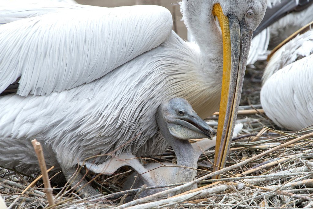 Nachwuchs bei den Krauskopfpelikanen im Tiergarten Schönbrunn