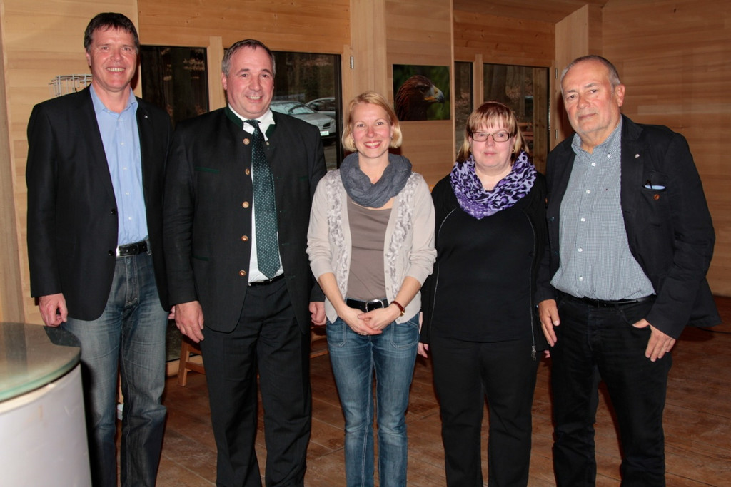 Neu im Vorstand: Freddy Kaiser, Gemeindevorsteher aus Mauren, Bezirksjägermeister Reinhard Metzler, Finanzchefin Maritta Hartmann-Mähr, Hildegard Wehinger mit Präsident Wolfgang Burtscher