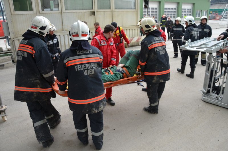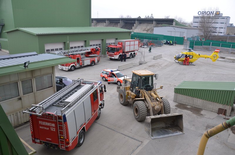 Arbeiter fiel in Wien-Liesing in leeres Mischwerk: Einsatzbilder