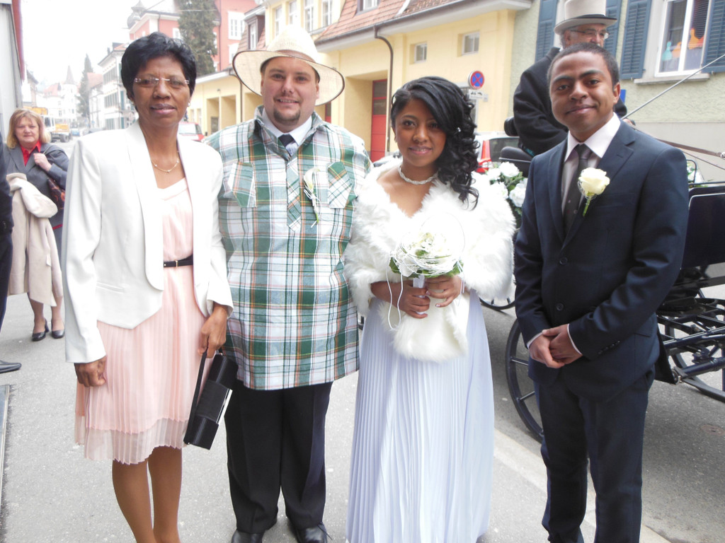 Das Paar mit Emilienne, der Mutter der Braut und Laza.