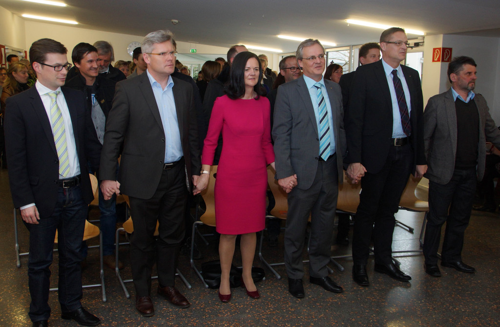 v.re. Rudi Jussel, LR Christian Bernhart, Bgm. Harald Sonderegger, Elisabeth Fink, Klaus Baldauf, Andreas Huber Schneider,