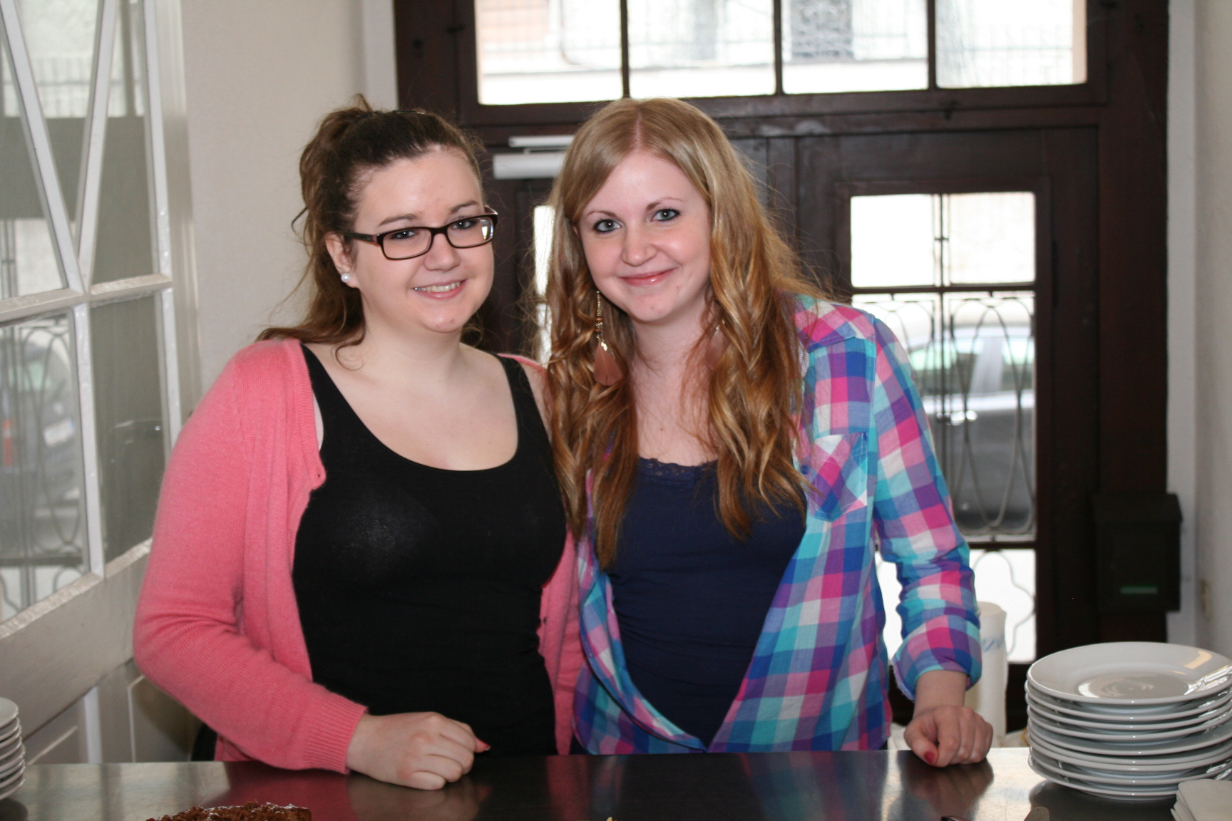 Hinter dem Kuchenbuffet: Petra und Sonja