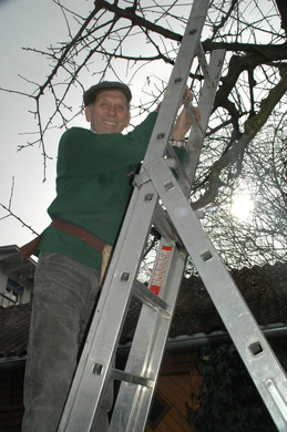 Hobbygärtner Helmut schneidet die ersten Obstbäume