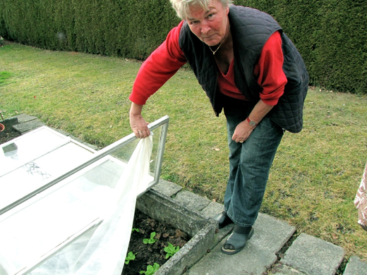 Hobby-Gärtnerin Gerda Kathan zeigt, dass die vor einer Woche gesetzten Salatsetzlinge schon prächtig gedeihen