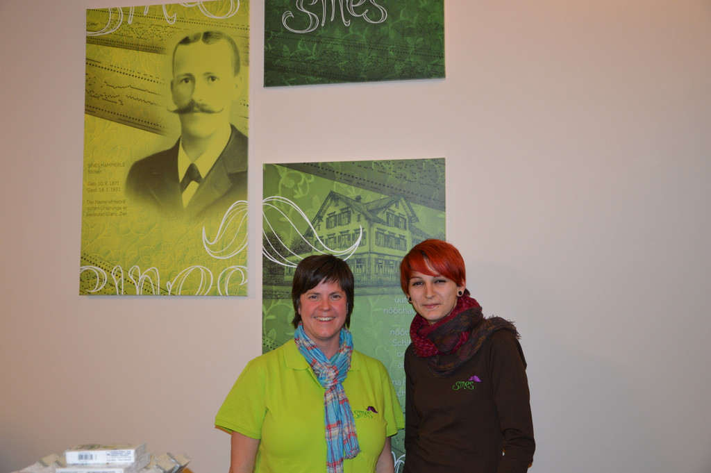 Vor dem Bild des Urgroßvaters von Valeria: die Floristinnen Julia und Sylvia