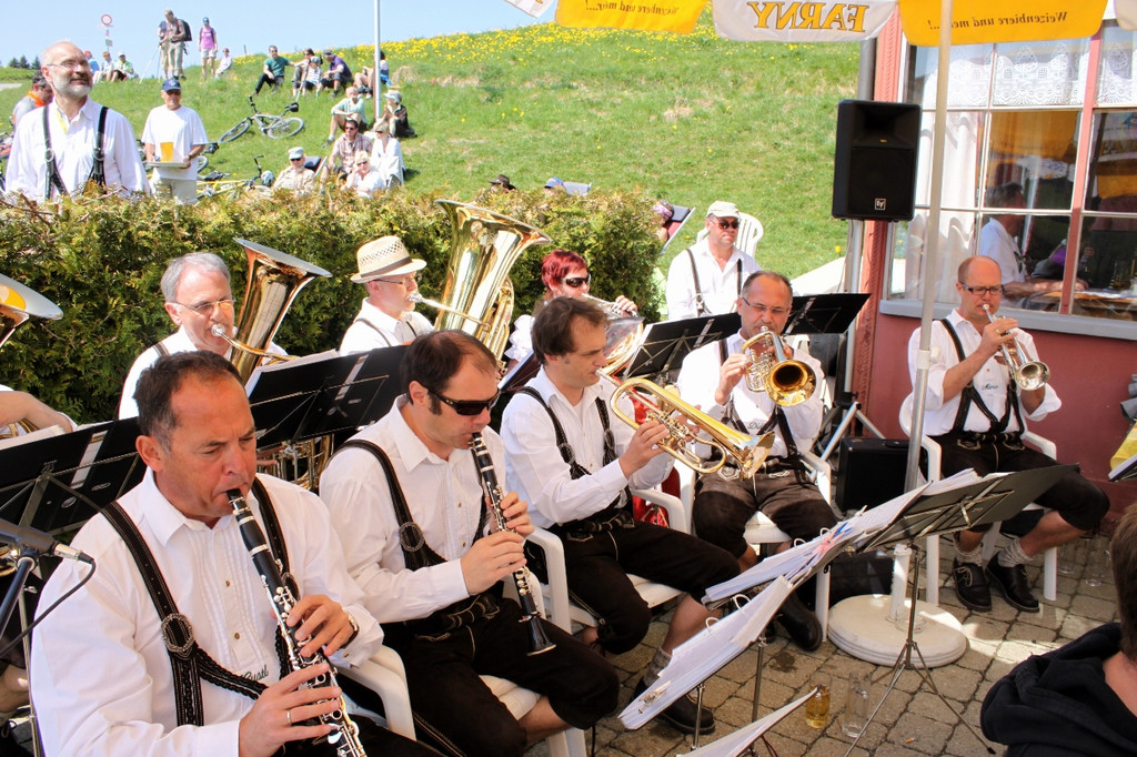 So ist die Stimmung beim Bergfrühschoppen mit den "Lochauer Bierblosn"