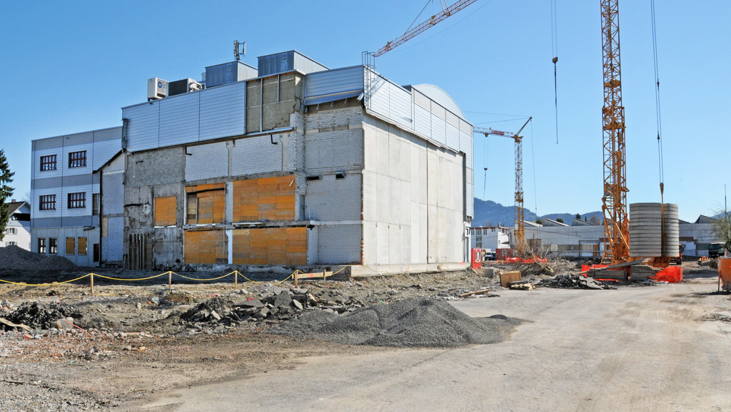 Künftiger Saal (links) und Shedhalle (hinten)