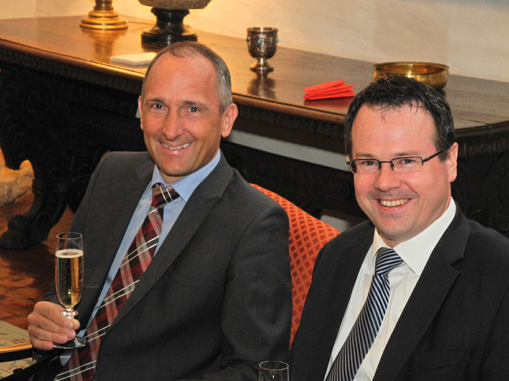 (l.) Regierungschef Adria Hasler mit Regierungschef Stv. Thomas Zwiefelhofer