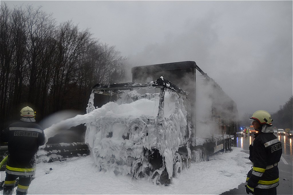 NÖ: Sattelzug auf der A21 bei Hochstraß vollständig ausgebrannt