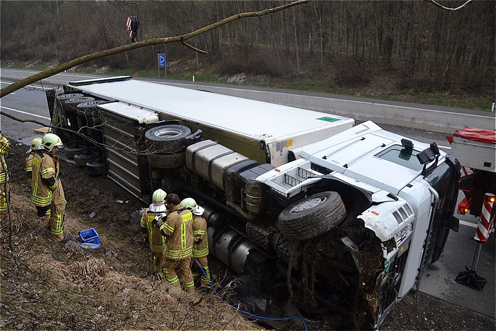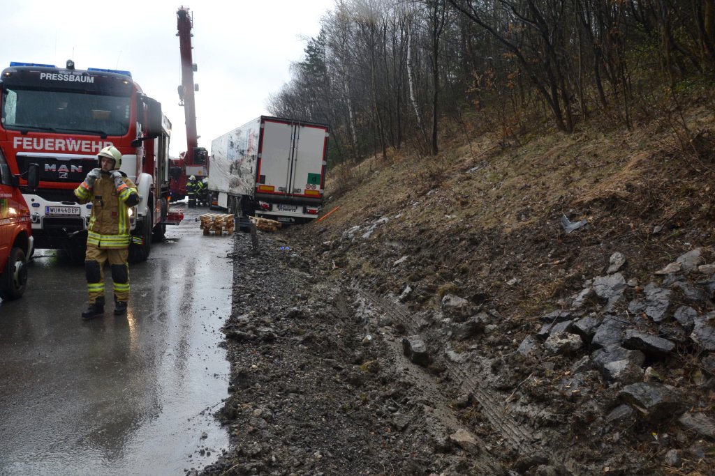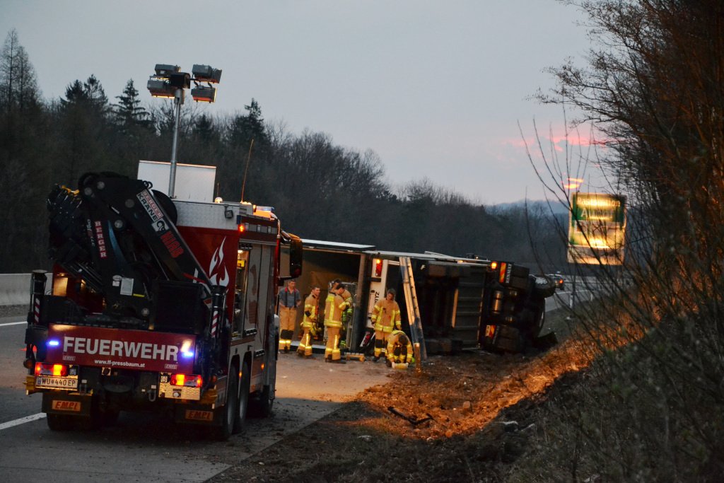 Lkw auf der A1 bei Pressbaum umgestürzt