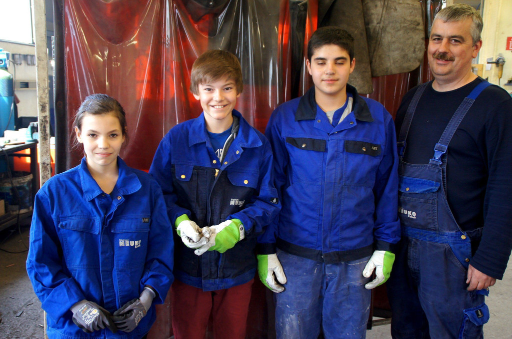 Walter Netzer mit Cheyenne Peinbauer (13) MS Hasenfeld, Clemens Käfer (13) MS Kirchdorf und Görkem Daya (13) MS Rheindorf