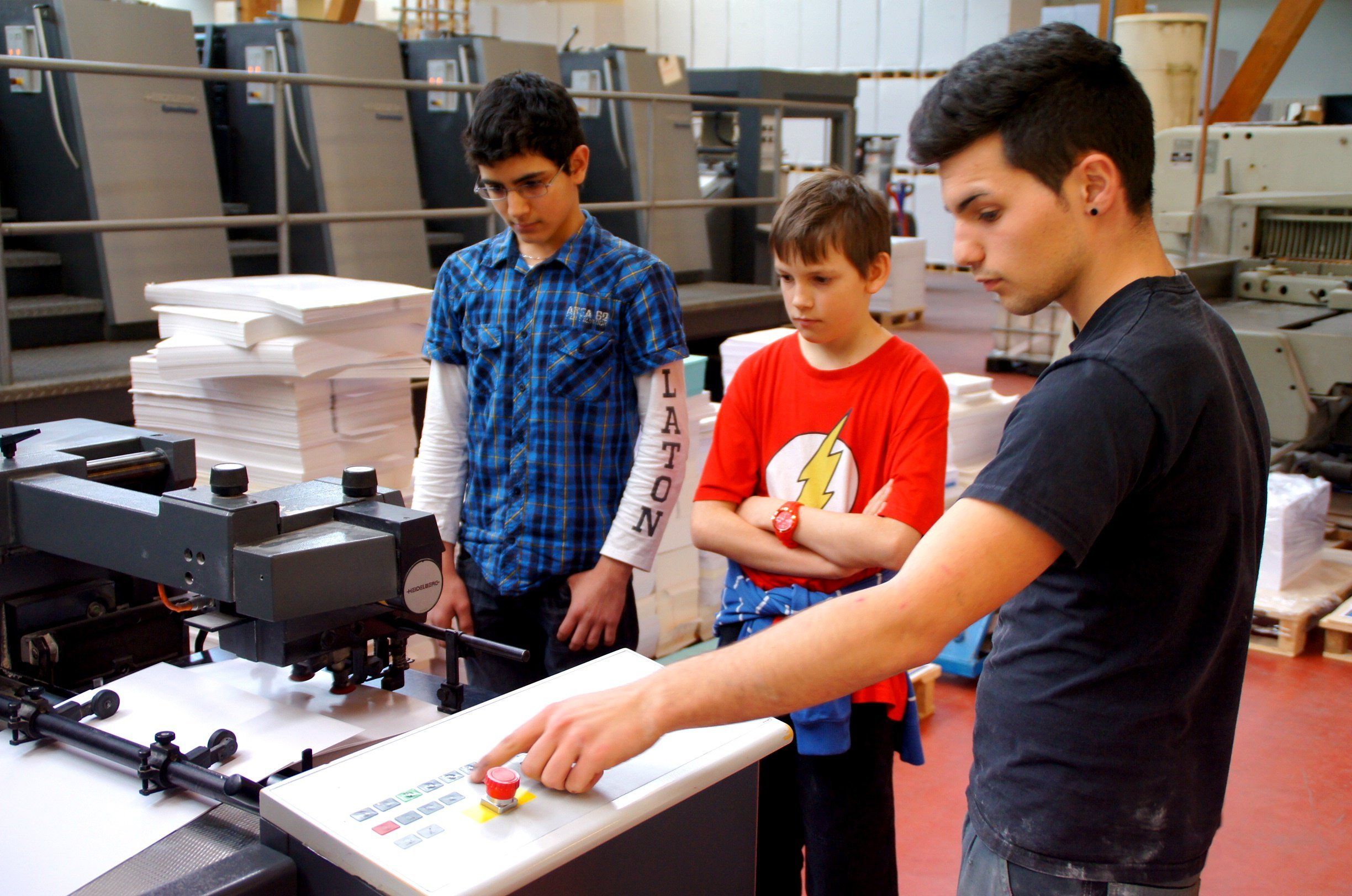 Kevin Herzog (18), Lehrling bei Bulu, mit Thomas Hofer (13) MS Rheindorf und Özkan Ügür (14) MS Kirchdorf
