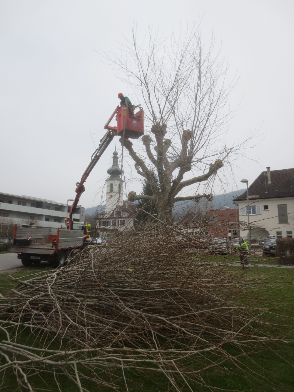 Wirtschaftshof beim Bäumeschneiden im Ortsgebiet unterwegs