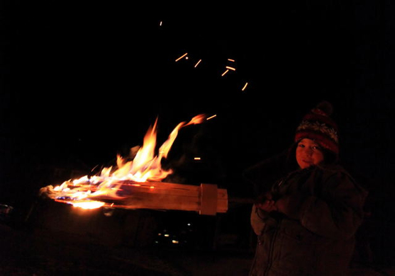 Stolz posiert Kindergartenkind Emanuel mit seiner brennenden Fackel vor der Kamera: "Ich bekämpfe das Feuer!" (Foto: Patrick Säly)
