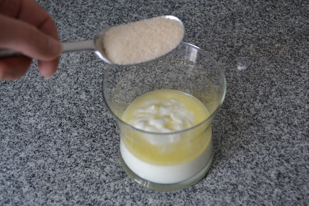 Mische Zitronensaft und Zucker unter das Joghurt