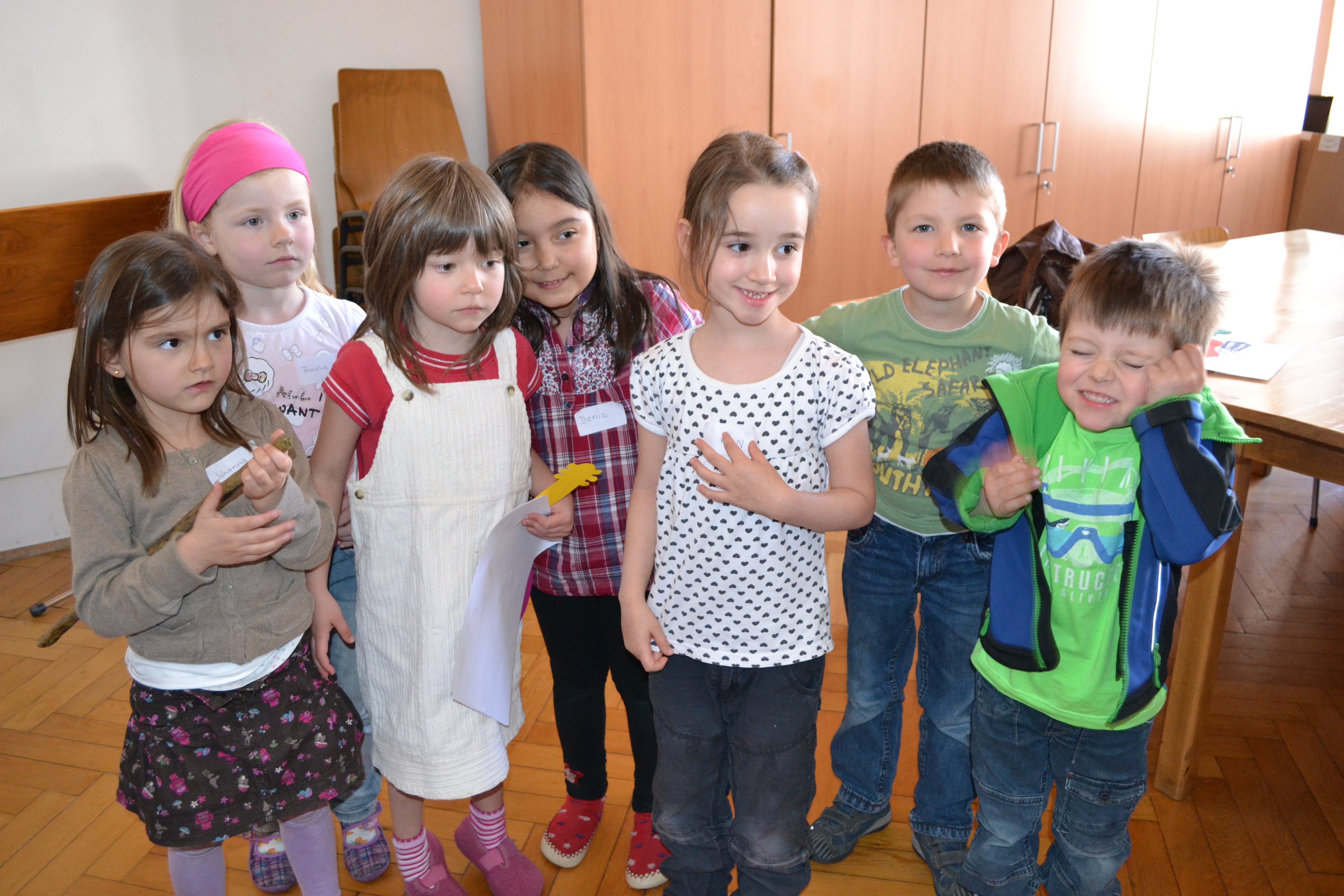 Johanna (4), Aurelia (6), Elli-Marie (5), Deniz (6), Nina (5), Michael (6) und Leonard (4)