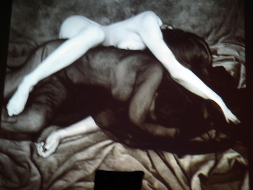 Vor Beginn des Kabaretts brachten erotische Bilder das Publikum in Stimmung