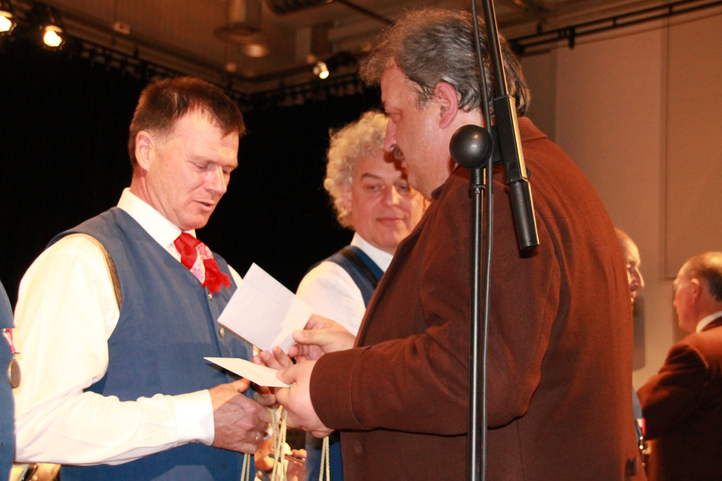 Manfred Scheriau ehrt Wolfgang Rüscher.