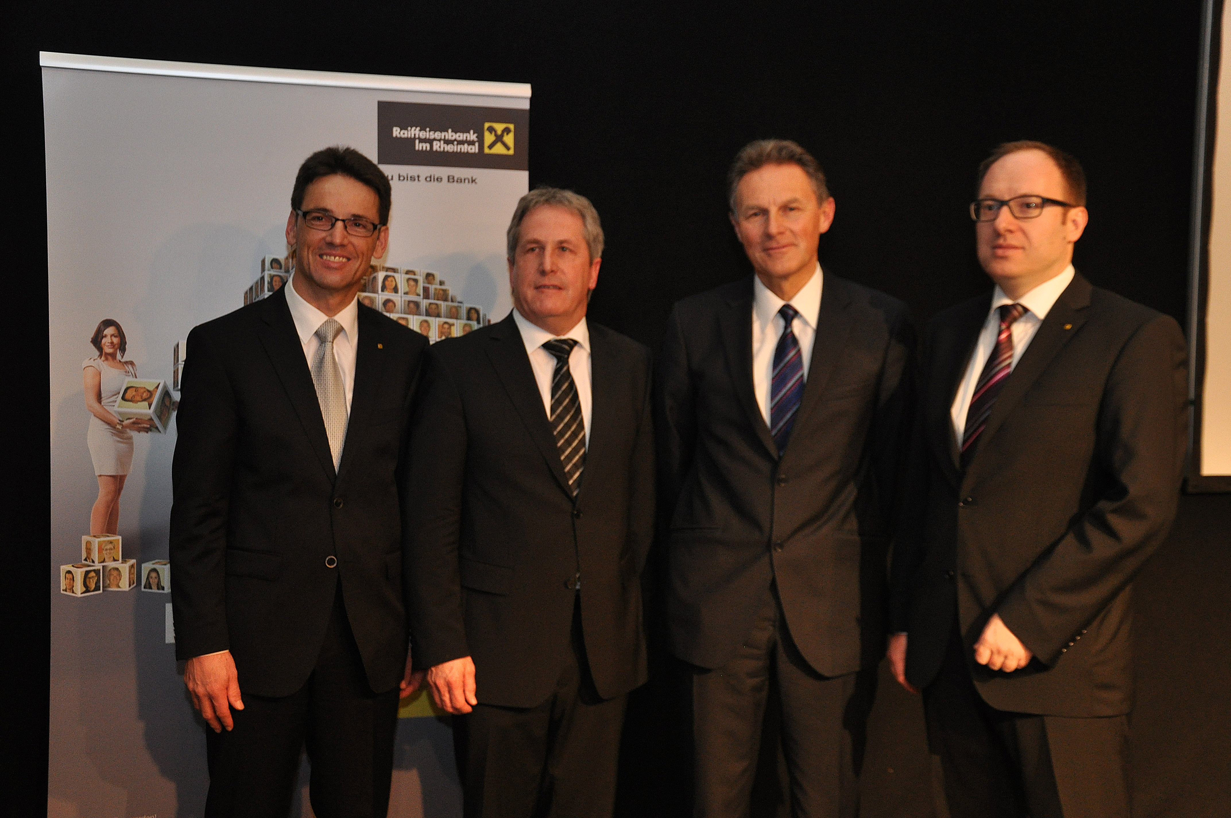 Die Vorstände und der Aufsichtsratsvorsitzende der Raiffeisenbank Im Rheintal: Wilfried Amann, Anton Rein, Wolfgang Zumtobel und Gernot Erne.