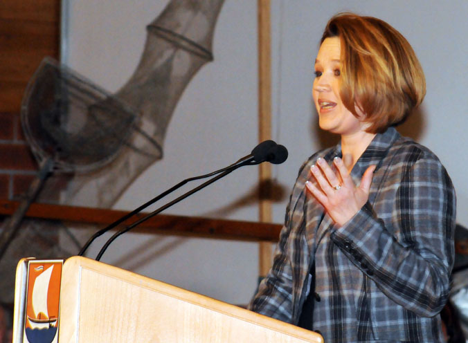 Landesrätin Andrea Kaufmann lobt das Heimatbuch