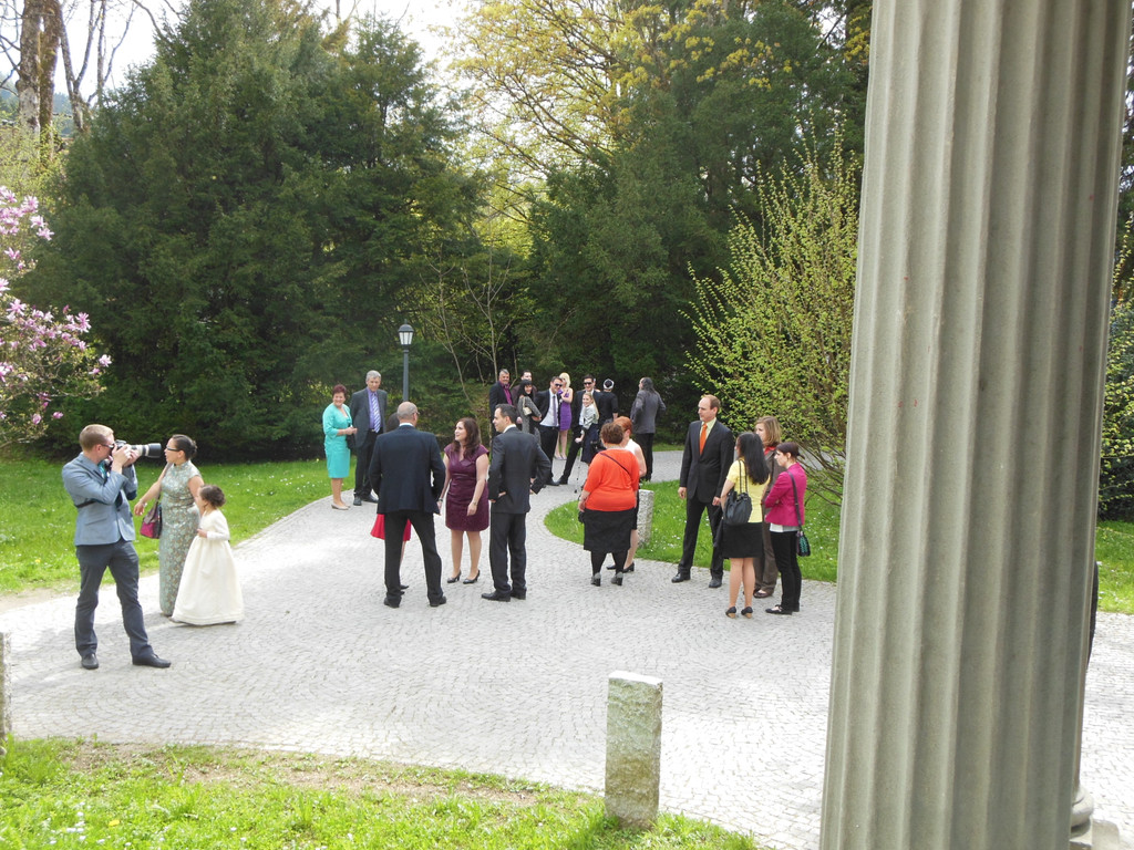 Die Hochzeitsgesellschaft wartet auf Braut und Br__utigam.JPG