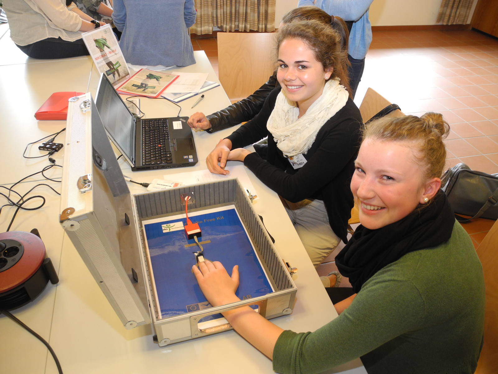 Die Peers unterwiesen in der Handhabung des Rauchpräventionskoffer
