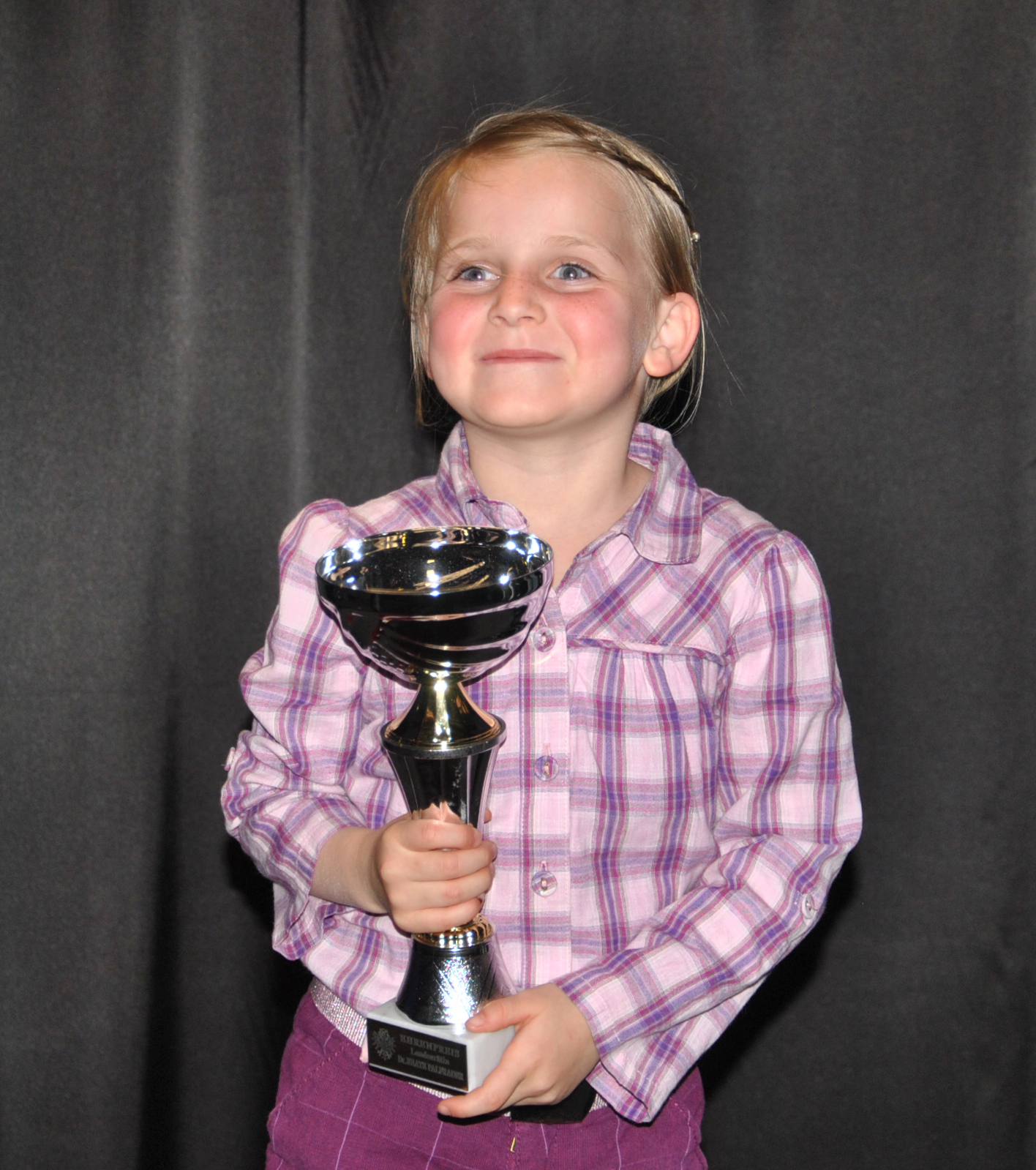 Die vierjährige Aniell mit ihrem Pokal