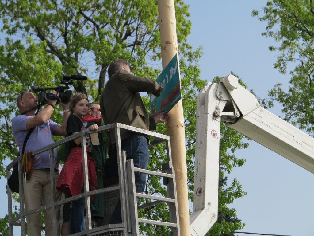 Maibäume in Wien-Donaustadt aufgestellt