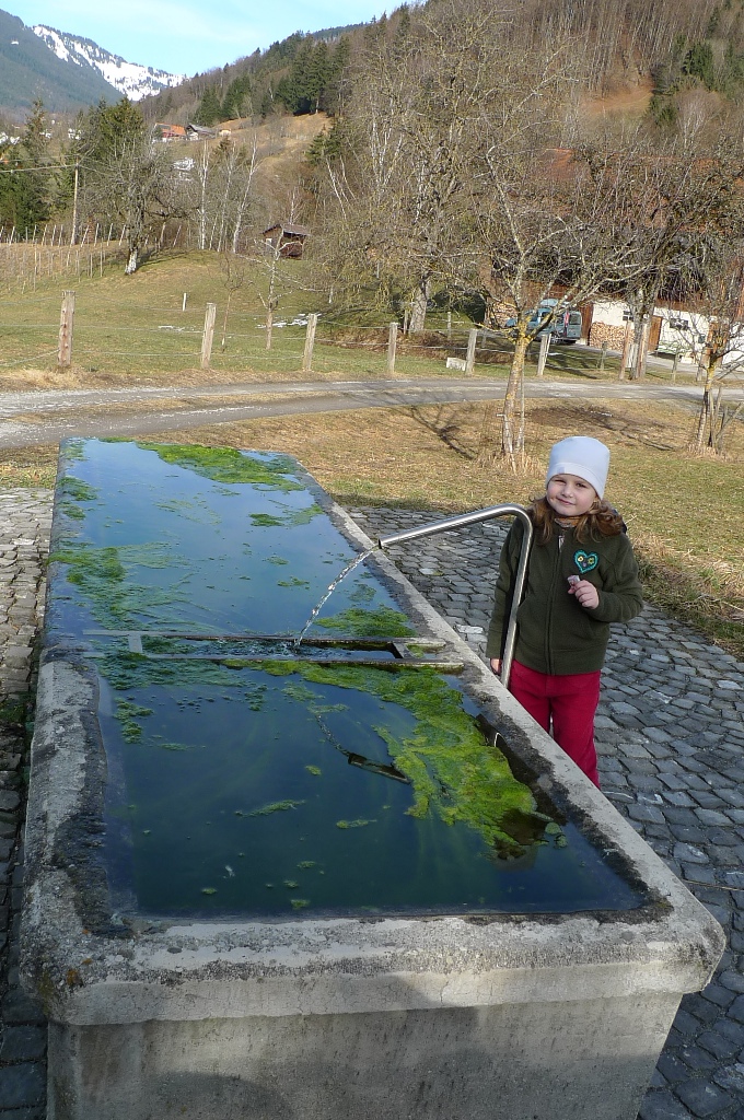 Emma rastet bei einem Brunnen.
