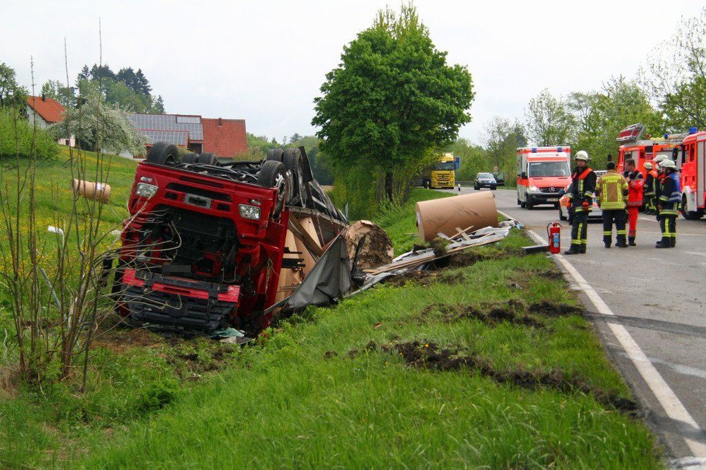 Weißensberg (D): Lkw-Überschlag auf der B31