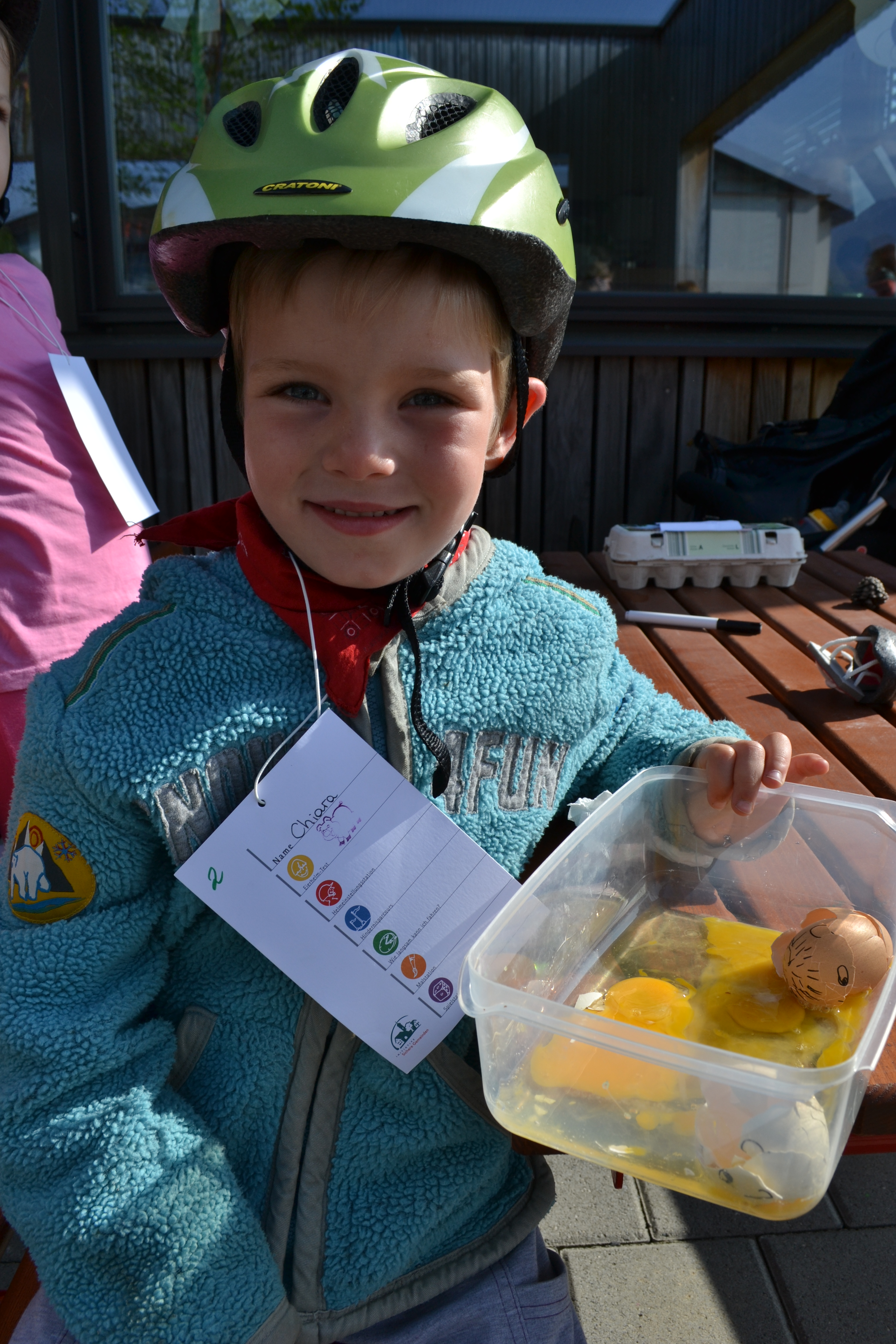 Chiara beim Eierhelmtest