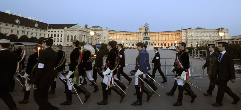 8. Mai 2012 am Wiener Heldenplatz: Burschenschafter und Demonstranten