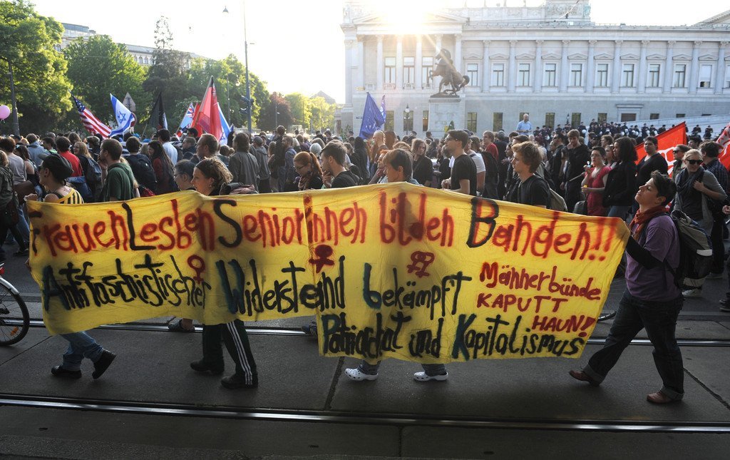 8. Mai 2012 am Wiener Heldenplatz: Burschenschafter und Demonstranten