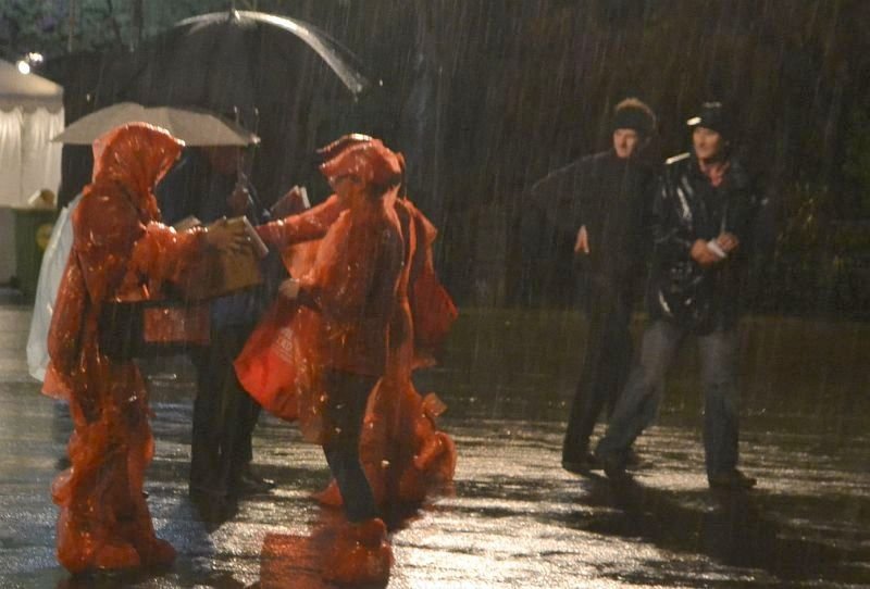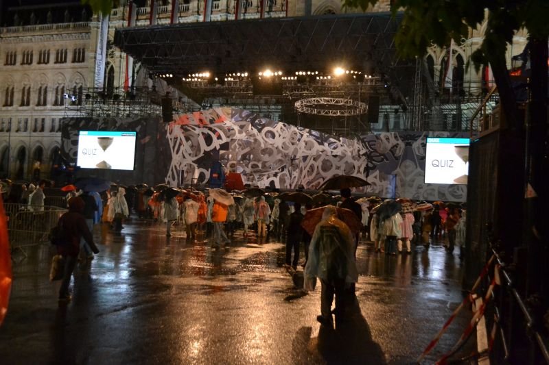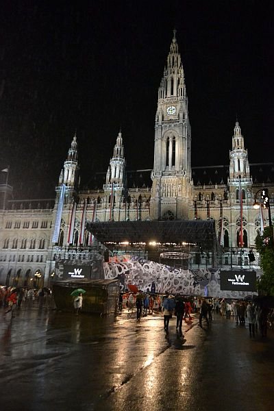 Verregnete Eröffnungsfeier der Wiener Festwochen am Rathausplatz
