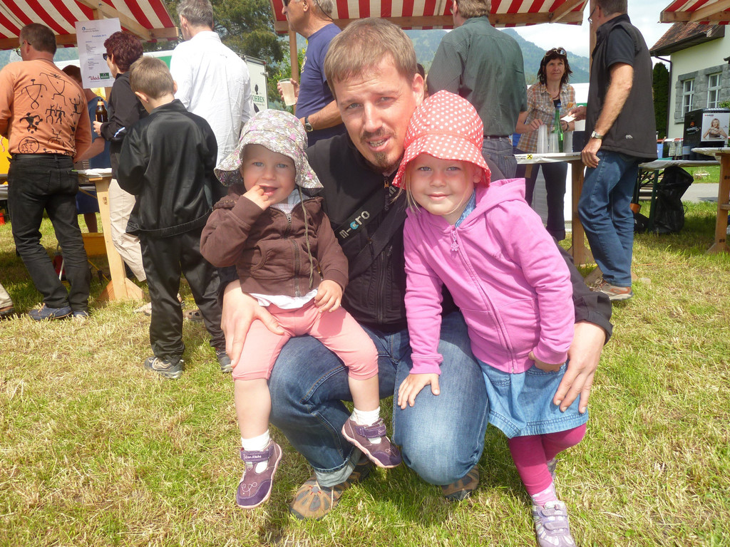 Papa Mathias mit Mona und Ladina.