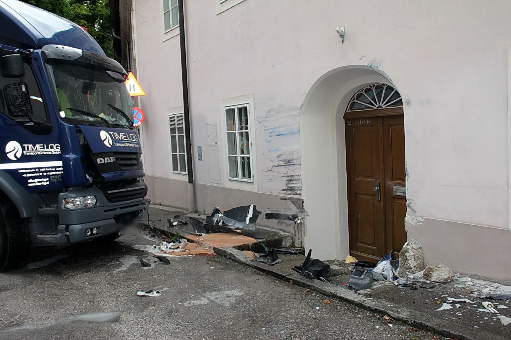 Lkw prallt in Hausmauer