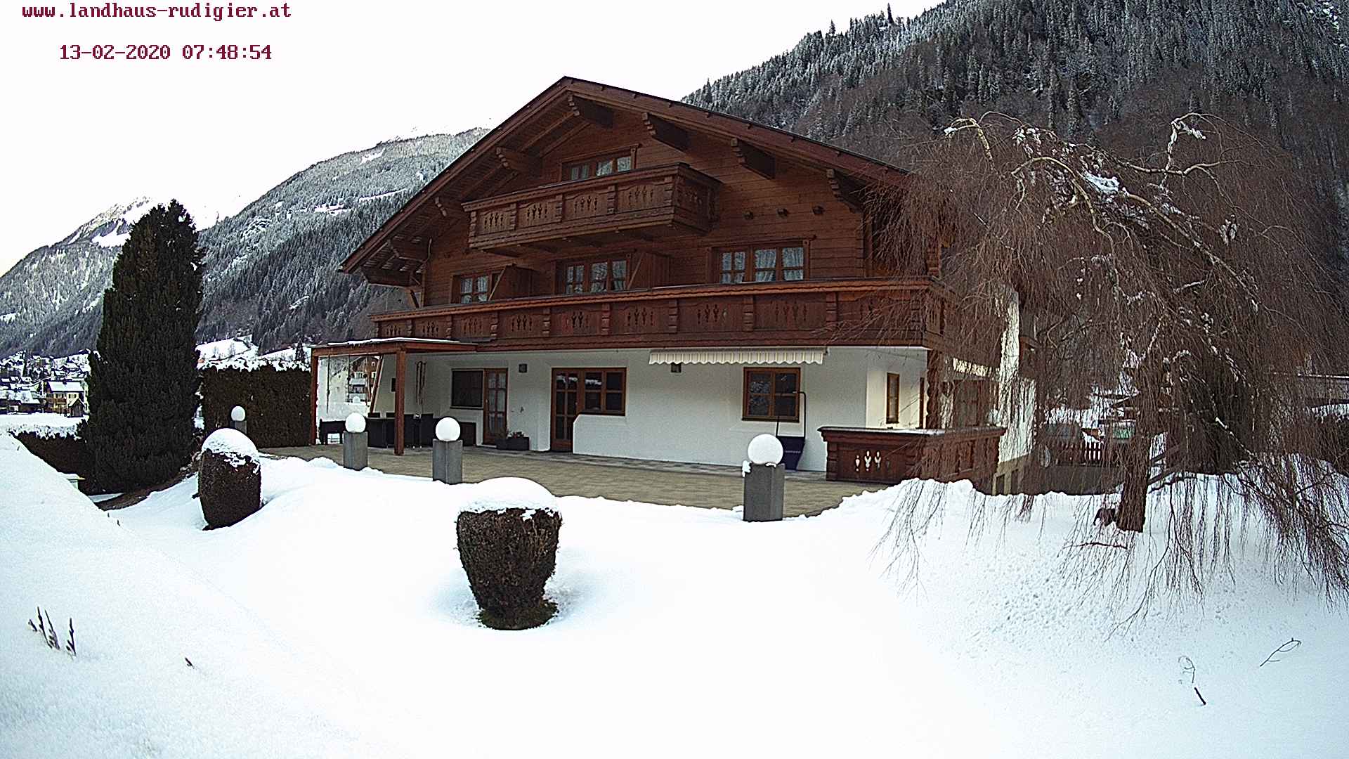 Blick auf das 'Landhaus Rudigier' in St. Gallenkirch/Gortipohl im Montafon. Webcam auf ca. 950 Meter Seehöhe. (Quelle: www.landhaus-rudigier.at)