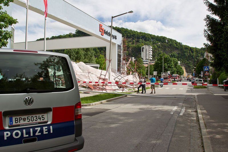Baugerüst vor Salzburg AG umgestürzt