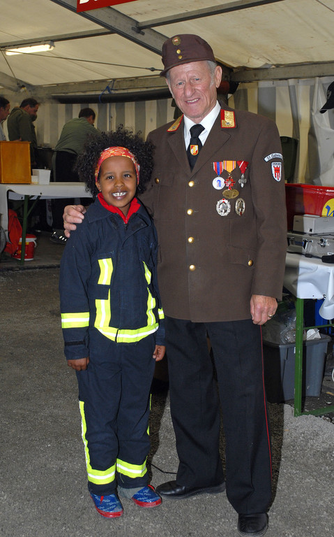 Othmar Netzer, 30 Jahre Kommandant der Feuerwehr St. Gallenkirch, mit Enkelin Nigisti