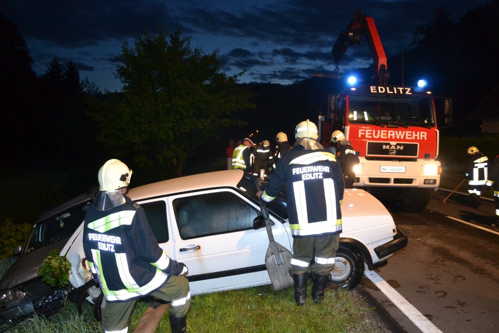 Großeinsatz nach Verkehrsunfall auf der B55 in Edlitz