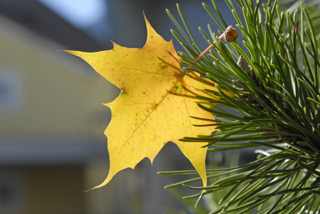 29. Oktober: Ahornblatt, fotografiert bei der Mittelschule Schruns-Dorf. (Foto: Gerhard Scopoli)