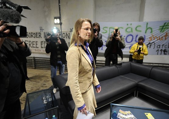 Wissenschaftsministerin Beatrix Karl diskutiert mit Studenten in Wien